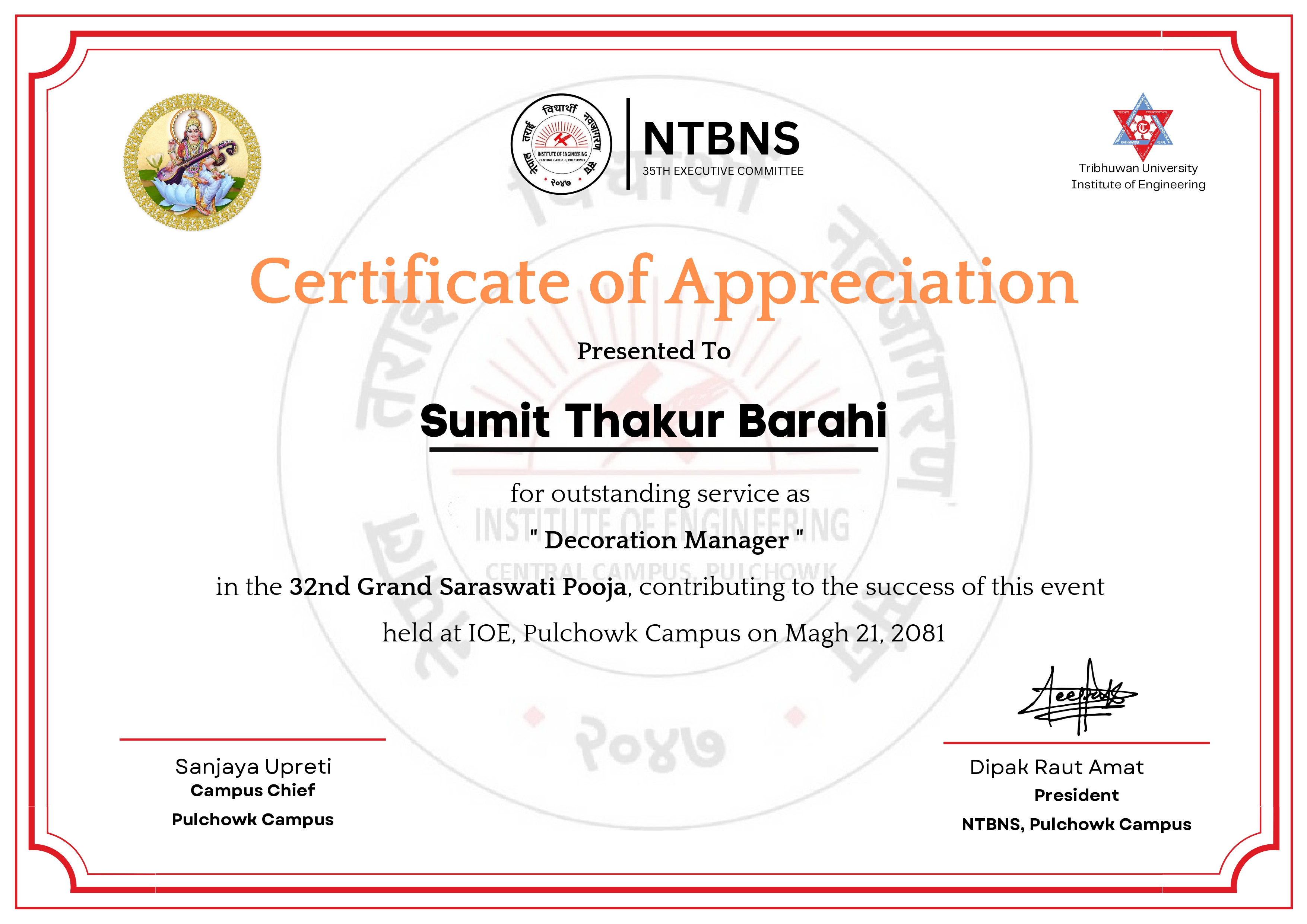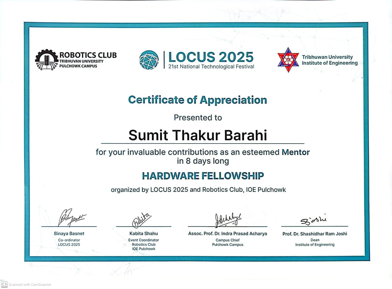 I represented Nepal at the ABU Robocon 2023 international robotics competition in Phnom Penh, where our team received the Mabuchi Motor Award. This experience strengthened my practical understanding of robotics systems, embedded control, and collaborative engineering.